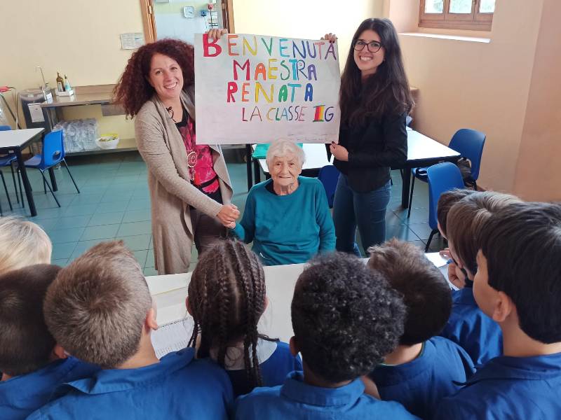 Per la maestra Lucia Del Lungo della scuola primaria "Giuseppe Mazzini" di San Donato in Poggio, che è stata allieva della maestra Renata fino all'anno della pensione, avvenuta nel 1989, è stata un'emozione averla in classe e presentarla ai suoi allievi come una figura centrale, un punto di riferimento che ha guidato e ispirato la sua infanzia e il suo percorso di studi. I bambini, nei panni di aspiranti storici, nell'ambito del programma scolastico che li sta impegnando ad affrontare il significato del passato e delle fonti orali e scritte, hanno accolto l’ultranovantenne con grande affetto e curiosità nella sala del refettorio scolastico.