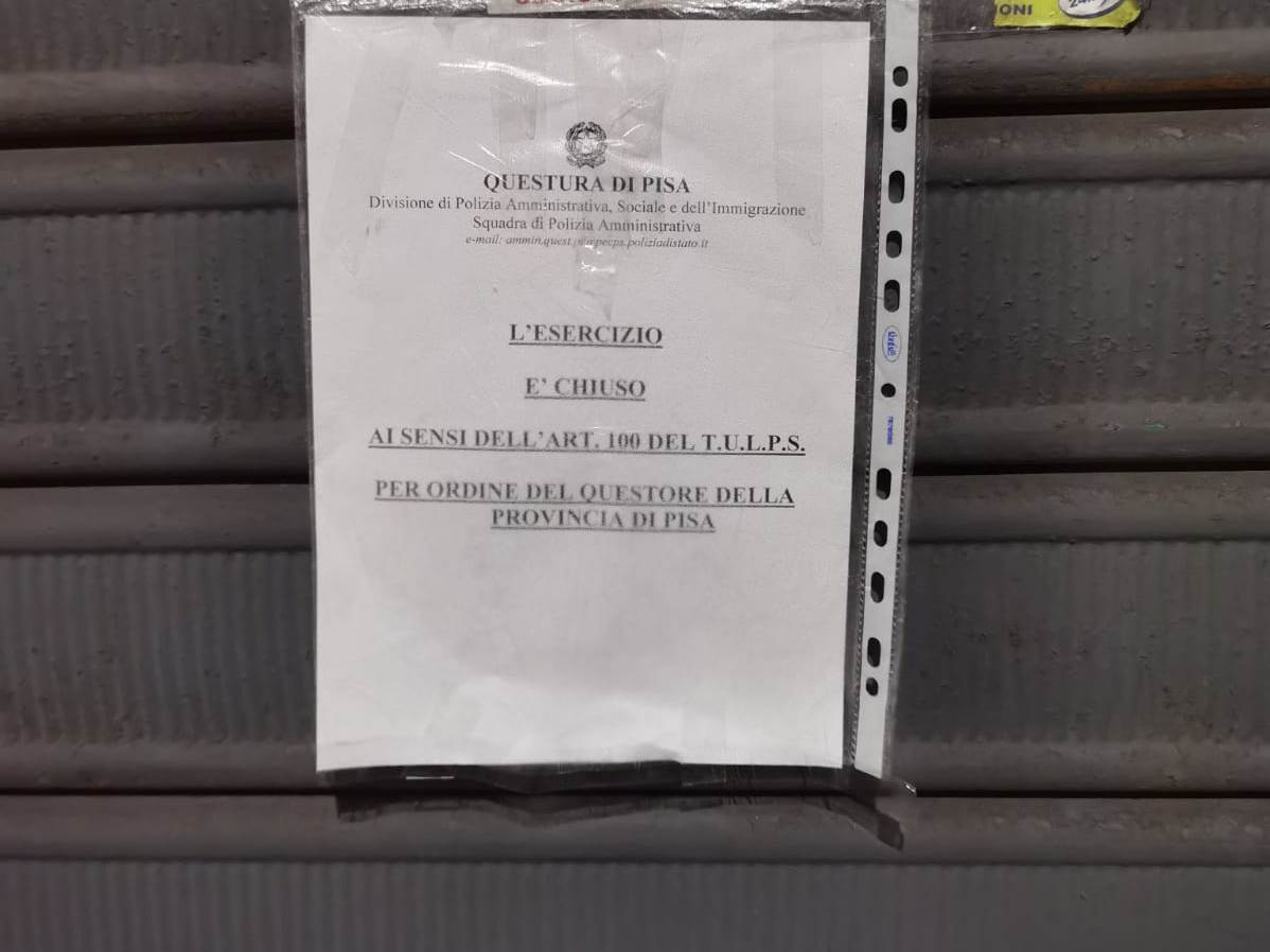 Una sala giochi di Pisa si è vista sospendere la licenza da parte della questura di Pisa per il fine settimana. Lo scorso 17 settembre infatti un uomo straniero, irregolare in Italia, è stato arrestato per detenzione di droga per lo spaccio. L'uomo era stato trovato proprio all'interno della sala giochi durante un controllo. L'arresto e la proposta di chiusura sono per mano della polizia municipale di Pisa.
