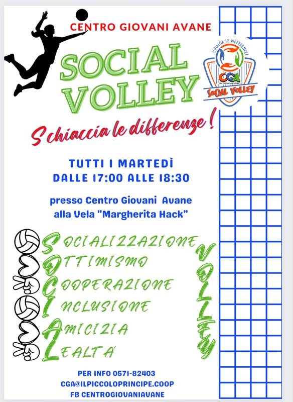 Il progetto SOCIAL VOLLEY è arrivato al suo primo anno di attività e durante lo scorso anno educativo del Centro Giovani Avane ha permesso a ragazzi e ragazze di passare del tempo insieme all'insegna del divertimento avendo come focus l'inclusione e la valorizzazione nel gioco di tutte le diversità.