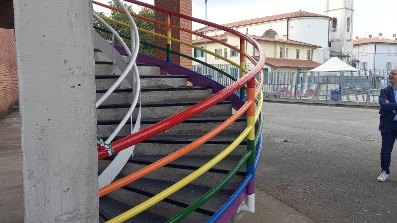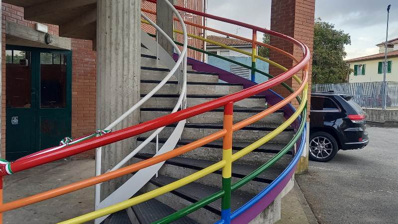 La palestra di Staffoli ha un nuovo corrimano nella scala esterna. Ha i colori dell'arcobaleno e non è un caso. L'installazione 'rainbow' è una scelta per lanciare un messaggio contro le discriminazioni di genere. In via Milano nella frazione del comune di Santa Croce sull'Arno si staglia adesso una scala multicolore. Un invito all'inclusione direttamente dal piccolo centro delle Cerbaie.