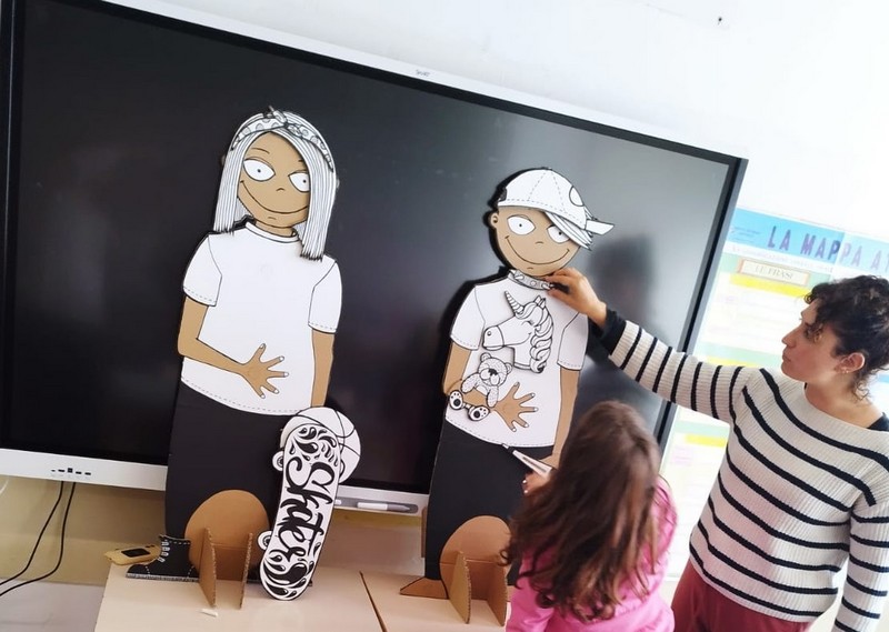 In particolare le operatrici hanno presentato alle classi una valigia contenente due sagome M (maschio) ed una F (femmina), oltre a parole, simboli, oggetti, modi di dire, colori, espressioni, pensieri, emozioni legati al mondo maschile e femminile. Gli alunni hanno cercato di costruire tutti insieme la sagoma dei due generi, discutendo sul perché delle scelte fatte, in un percorso che ha aiutato a capire come alcuni stereotipi di genere (ad esempio come il calcio sia solo uno sport maschile, la sensibilità una caratteristica solo femminile etc) possano essere superati e visti in una diversa prospettiva.