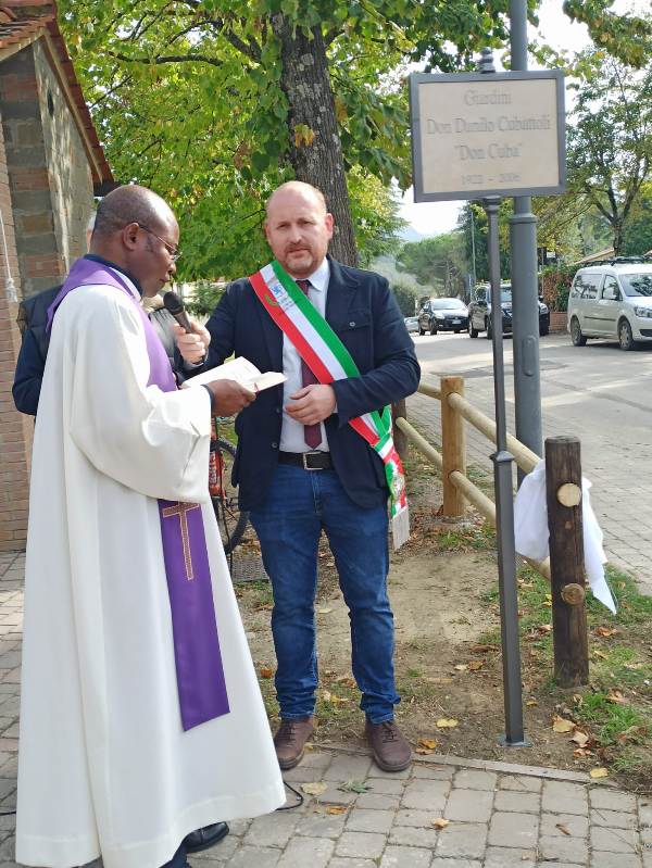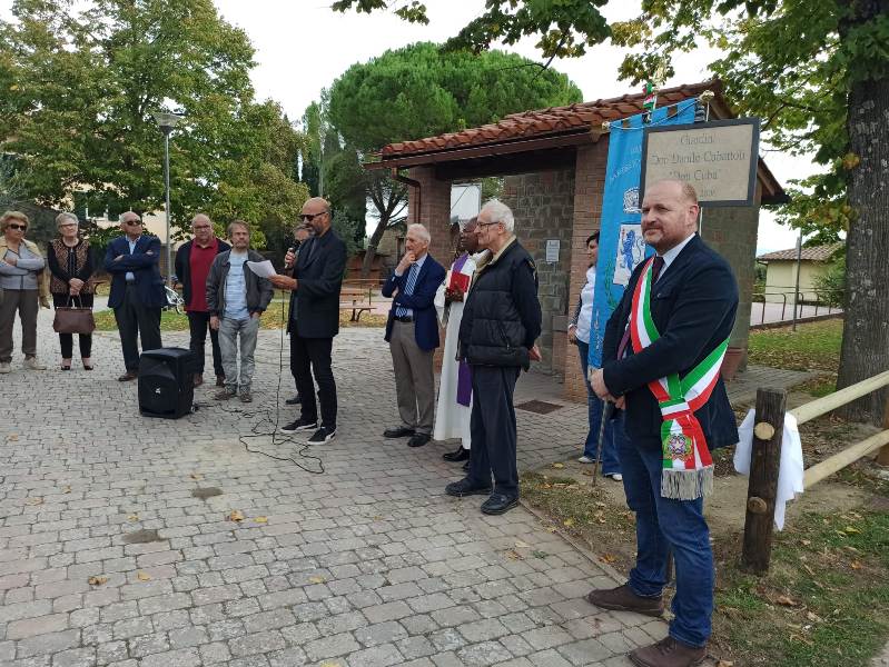 Passeggiare, giocare, condividere un momento di socialità nel cuore verde di via Boccaccio, a San Donato in Poggio, e chiedersi chi sia stato, quale importante opera abbia compiuto il parroco la cui identità, oggi ancora più visibile, è incisa sulla nuova targa collocata nella frazione del comune di Barberino Tavarnelle. A motivare l’intento e la scelta del luogo è stato il sindaco David Baroncelli, dopo aver scoperto la targa alla presenza di tantissime persone, tra parenti, amici e conoscenti legati alla figura di Don Cuba. “Abbiamo voluto rendere omaggio al centenario della nascita che ricorre quest’anno - ha commentato - radicando un segno, un elemento permanente nel borgo natale del parroco, a San Donato in Poggio, l’area di un giardino, frequentata dai più giovani e dalle famiglie, ci è sembrata quella più adatta per dare un futuro all’importante eredità di valori lasciata da Don Cuba, all’ideale album di ricordi che chiunque passi dal giardino potrà conoscere e sfogliare”.
