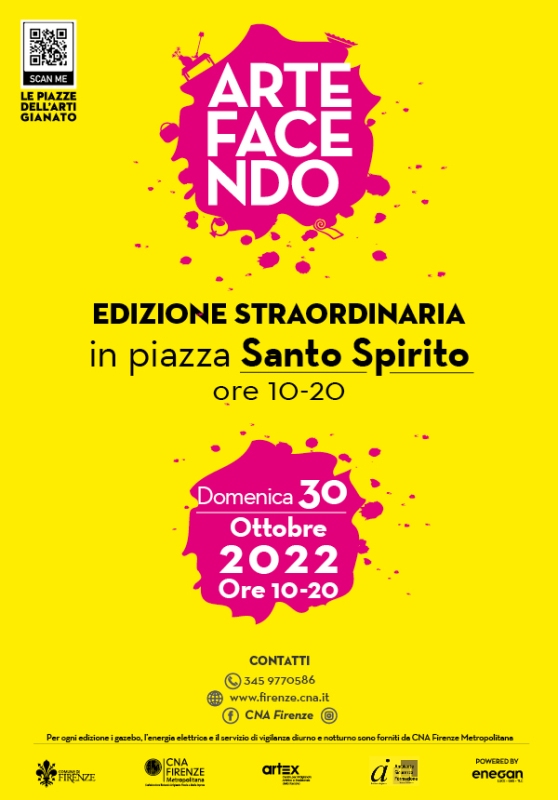 Domenica 30 ottobre, invece, per la prima volta in Piazza Santo Spirito, a Firenze, andrà in scena Artefacendo, il format unico che valorizza il meglio dell’artigianato artistico, della moda e del complemento d’arredo, attraverso non solo la presentazione e la vendita dei prodotti esposti, ma anche il coinvolgimento del visitatore nell’affascinante fase di realizzazione del manufatto, con dimostrazioni dal vivo e una vera e propria immersione nei processi produttivi solitamente apprezzabili soltanto in bottega (ore 10-20).
