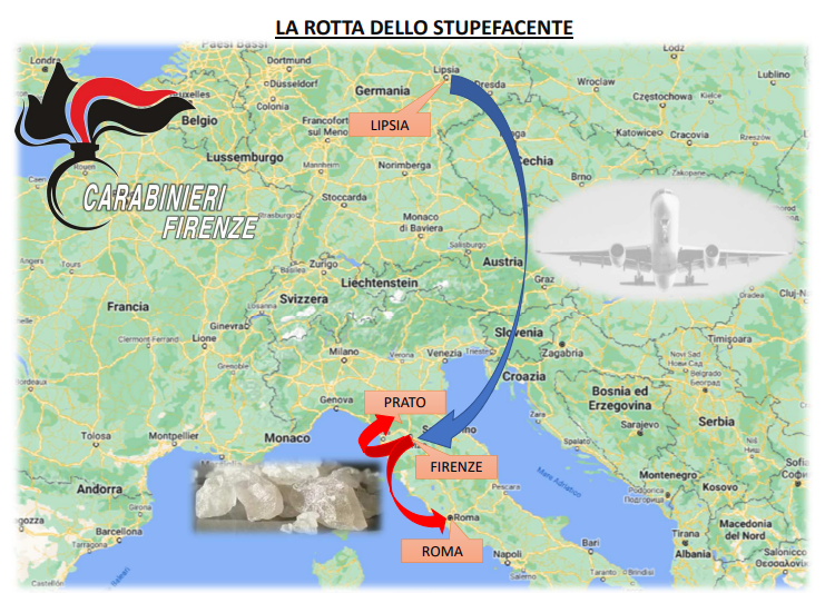 Successivamente, mediante l’utilizzo di corrieri di nazionalità cinese, la droga veniva dirottata alle principali piazze di smercio di Prato, Firenze e Roma.