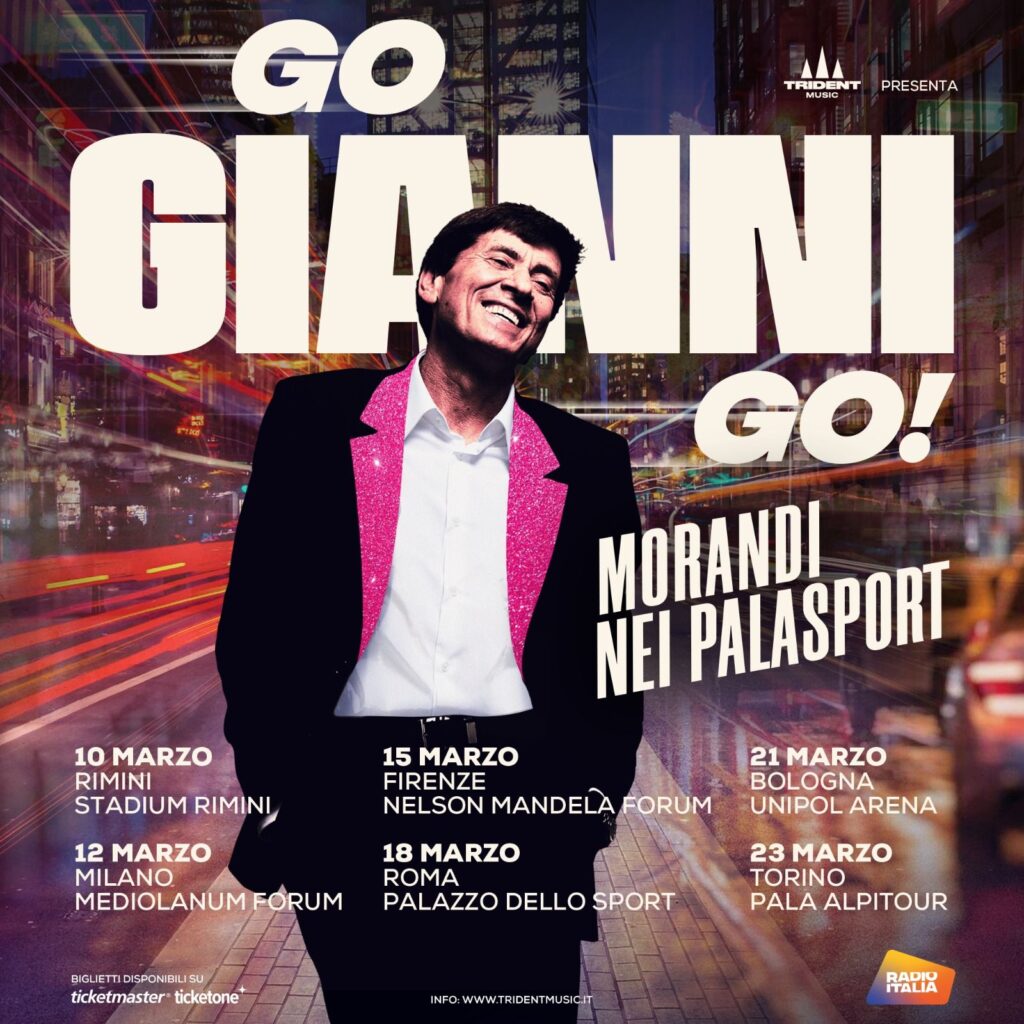 Il tour segue la scia delle partecipazioni di Morandi sui palchi del Jova Beach Party, che hanno animato l’estate 2022 con performance iconiche e inediti duetti. Acclamato da un’audience multigenerazionale, con il GO GIANNI GO! MORANDI NEI PALASPORT GIANNI MORANDI è pronto a regalare una volta in più al suo pubblico uno show ricco di emozioni indimenticabili.
