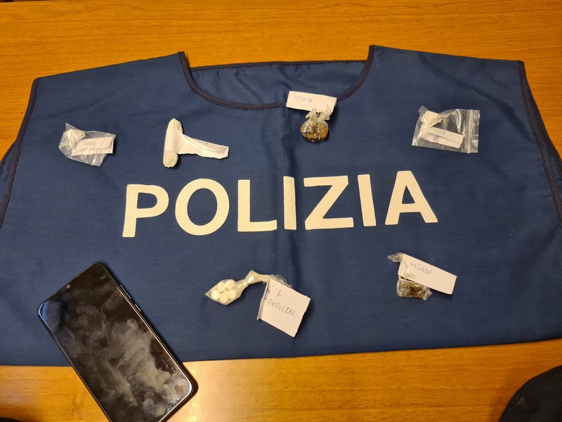 I poliziotti hanno verificato che in una bustina vi erano sette pasticche di sostanza stupefacente, in un sacchetto dell’hashish. Subito perquisito, l’uomo in tasca aveva anche tre involucri con della cocaina già confezionata in dosi, il tutto pronto per la consegna a domicilio nel centro cittadino, ancora animato da numerosi giovani.