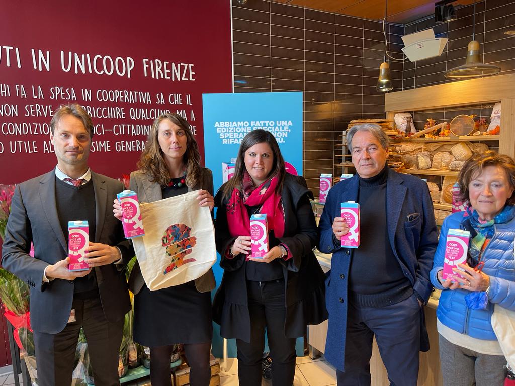 Nel periodo dell’iniziativa, in tutti i supermercati Coop in Toscana, il latte parzialmente scremato Coop sarà in edizione speciale, vestito di rosa e targato con il 1522, il numero nazionale antiviolenza e stalking attivo 24 ore su 24, che sarà stampato in evidenza su ogni confezione. Acquistando il prodotto, si potrà contribuire a sostenere i centri antiviolenza attivi in Toscana. Sarà possibile contribuire alla campagna anche acquistando la borsa di tela, in edizione limitata e in vendita fino alla fine di novembre, firmata dall’illustratrice nigeriano-italiana Diana Ejaita. Per ogni borsa acquistata, Unicoop Firenze donerà 50 centesimi alle associazioni che operano a difesa delle donne vittime di violenza.