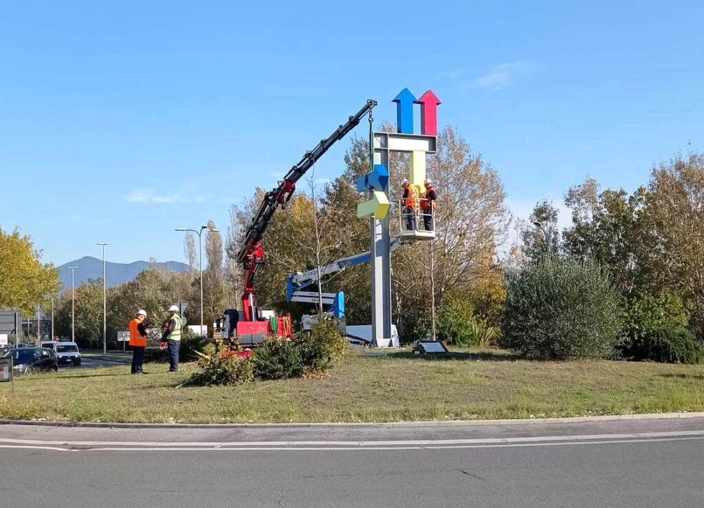 Ieri mattina è stato posizionato il primo dei totem indicatori (altezza 7 metri) che saranno installati nelle quattro rotatorie presenti, con grandi frecce colorate, mentre sono già stati tinteggiati di azzurro e di rosso alcuni marciapiedi. A breve anche la posa della nuova cartellonistica per l’orientamento e l’individuazione delle aziende presenti. I lavori proseguiranno nei prossimi giorni compatibilmente alla situazione meteo. In programma anche la messa a dimora di nuove alberature e riqualificazione di aree a verde.