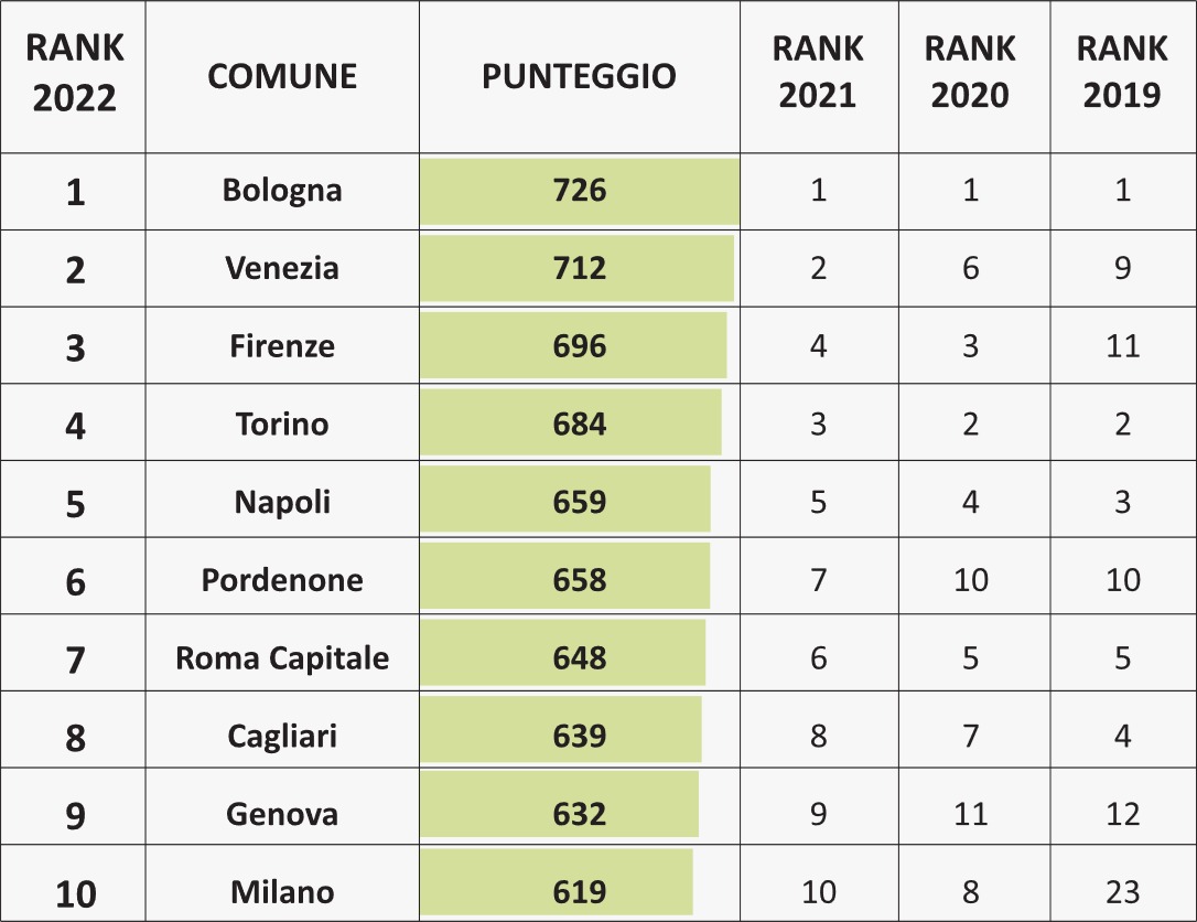 Bologna e Venezia si confermano le città italiane più “social”, seguite da Firenze, che scalza il terzo gradino del podio a Torino (quarta) e poi Napoli, Pordenone, Roma, Cagliari, Genova e Milano a chiudere la top ten. Lo evidenzia l’indagine di FPA, società del Gruppo DIGITAL360, sull’utilizzo dei social network di 108 comuni capoluogo, che ha determinato un indice sulla base della presenza, del tasso di penetrazione, della frequenza di aggiornamento e produzione di contenuti su 7 social network. L’indagine restituisce un patrimonio di informazioni unico sull’evoluzione della presenza dei social media nei comuni capoluogo, grazie a una rilevazione completa e aggiornata ogni anno. L’indice delle social cities, infatti, è uno degli indicatori dell’annuale classifica di FPA sui comuni più digitali d’Italia, il Rapporto “ICity Rank”, la cui edizione 2022 sarà presentata integralmente il prossimo 29 novembre a FORUM PA Città.