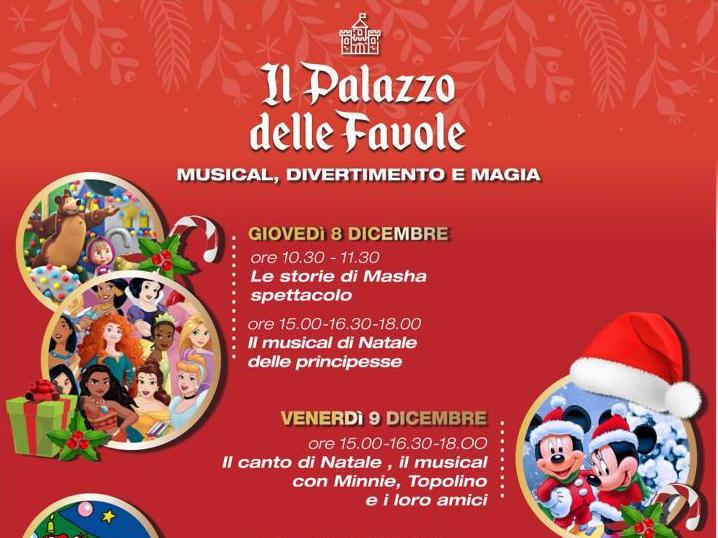 Gli spettacoli musicali de “Il palazzo delle favole” si apriranno l’8 dicembre alle 10.30 con lo spettacolo “le storie di Masha”, mentre nel pomeriggio sarà la volta del “musical di Natale delle principesse”.