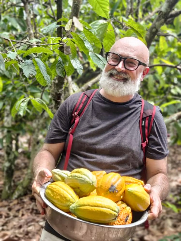 Insieme a un gruppo di professionisti del settore, accompagnato da Andrea Mecozzi, uno dei maggiori esperti italiani di cacao, durante le prime due giornate è stato in visita alle piantagioni di Tiassalè, gestite da Estelle Konan, responsabile della cooperativa Yosran, unica donna a capo della più importante cooperativa fornitrice di cacao aromatico e biologico dell’Africa tracciato in blockchain dall'azienda italiana Trusty. Dalla stessa piantagione proveniva il cacao, con cui lo scorso giugno il maestro aveva realizzato il primo gelato di massa completamente tracciato tramite QrCode dal contadino alla coppetta.