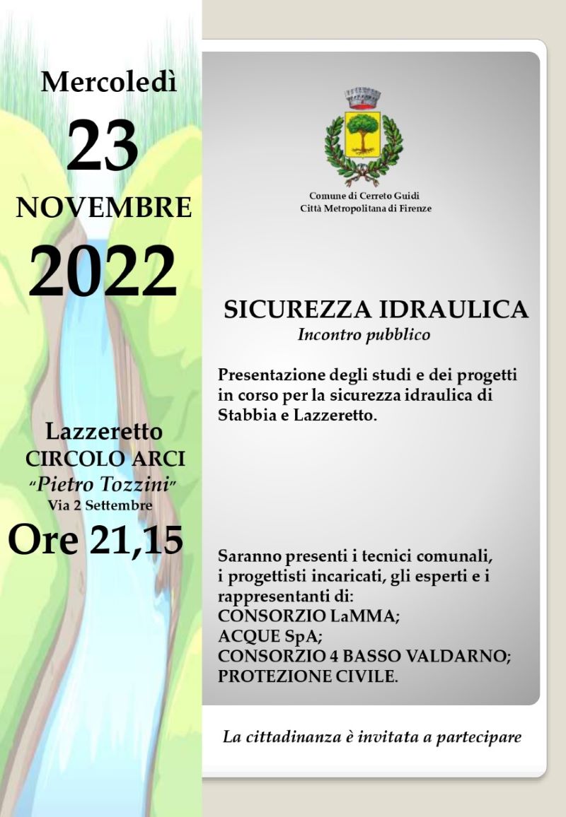 Per presentare gli studi e i progetti in corso per la sicurezza idraulica nelle frazioni di Stabbia e di Lazzeretto, saranno inoltre presenti i tecnici comunali e i progettisti incaricati.