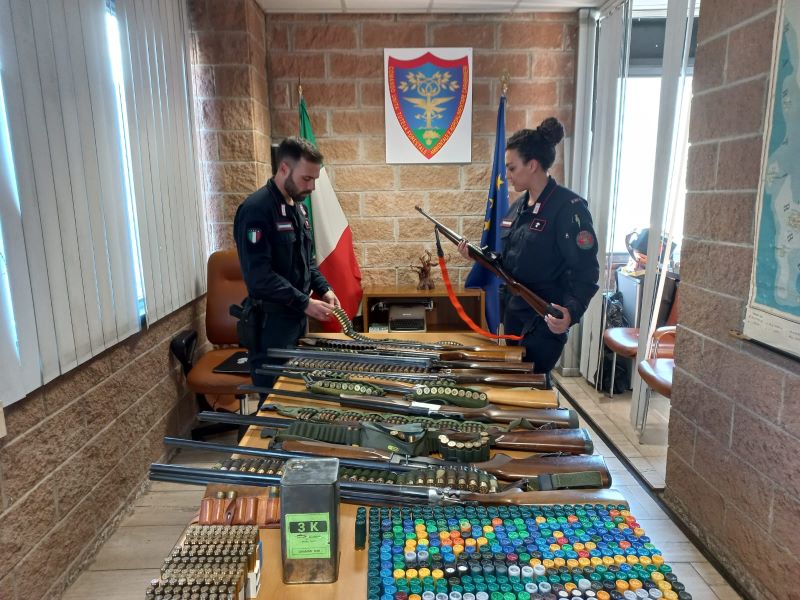 All'uomo sono stati sequestrati tre fucili di calibro compatibile con i bossoli di cartucce rinvenuti nel luogo dell'uccisione del cane e di una pistola non regolarmente denunciata. Sono stati anche ritirati 7 fucili, oltre 2.000 cartucce e altro materiale esplodente.