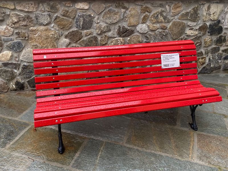 Si tratta di un’altra panchina collocata sul territorio comunale come simbolo di un percorso di sensibilizzazione verso il femminicidio e con l’intento di mantenere viva una presenza.