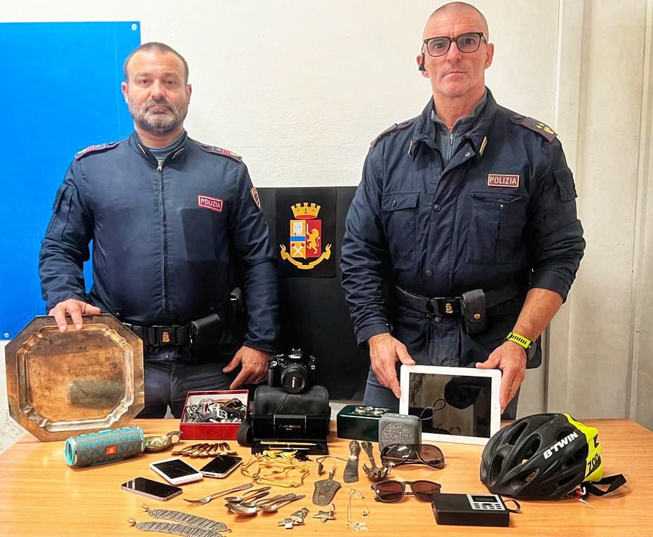 I poliziotti inoltre hanno trovato, nascosta sotto dei cartoni , un grosso numero di oggetti rubati, tra cui 3 Iphone, 1 smartphone, 1 Ipad rubato ad una impiegata pubblica di Pisa, 1 macchina fotografica Canon superaccessoriata, casco e borse di una mountain bike, asportate ad una ragazza pisana, numerosi pezzi di argenteria e orologi. Tra questi c'era anche lo smartphone del turista inglese.