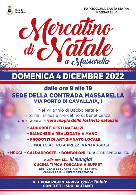 Natale è anche sinonimo di solidarietà. Per questo, come ogni anno, torna a Massarella il tradizionale mercatino di Natale a scopo benefico promosso dalla Parrocchia di Santa Maria.