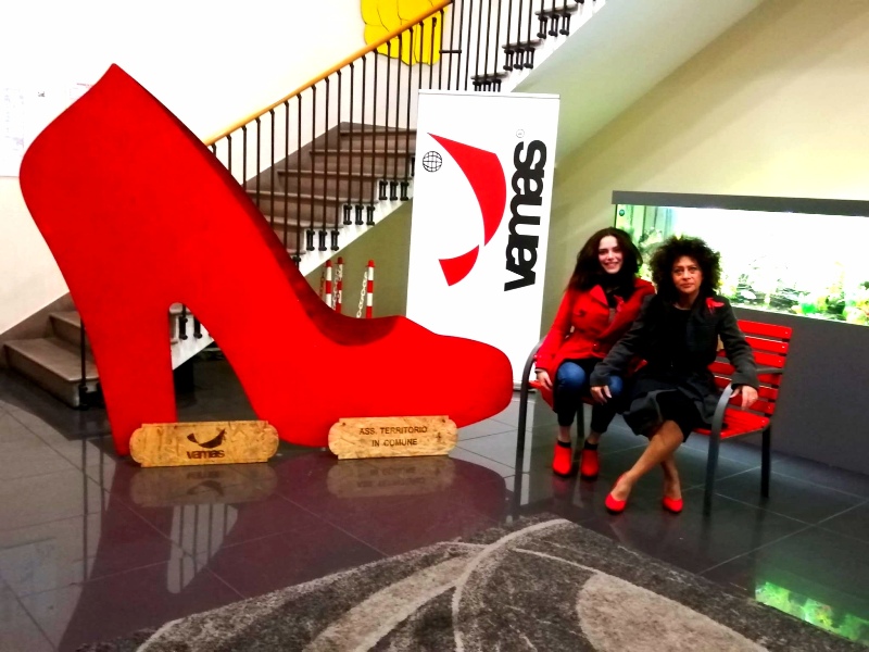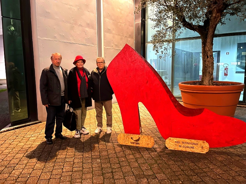 I volontari di "Territorio in comune" hanno partecipato all'iniziativa con le proprie creazioni in materiale riciclato, tra cui una grande scarpetta rossa, simbolo della battaglia contro la violenza sulle donne, attorno alla quale tutti i presenti uomini e donne, si sono riuniti.