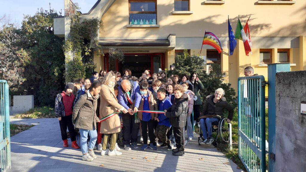 L’amministrazione comunale ha organizzato un evento di sensibilizzazione alla scuola di via Torino e inaugurato la conclusione di alcuni lavori di abbattimento delle barriere all’entrata della scuola.