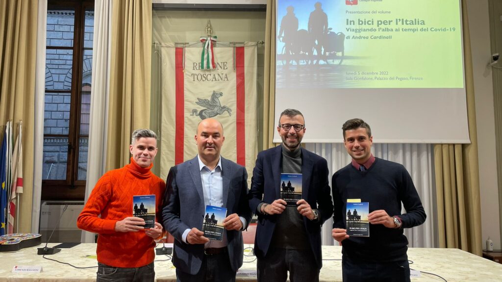 Firenze – Due fratelli, due biciclette e un viaggio partito da Figline e Incisa Valdarno per raccontare l’Italia dal monte Bianco a Bari, da Venezia a Napoli. E’ questa l’esperienza unica che ci trasmette Andrea Cardinali nel volume ‘In bici per l'Italia. Viaggiando l'alba ai tempi del Covid-19’. Il libro è stato presentato lunedì 5 dicembre nella sala Gonfalone a palazzo del Pegaso.