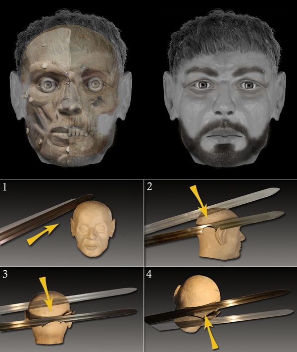 Le analisi svolte con questo strumento hanno permesso di indagare approfonditamente le lesioni scheletriche e, grazie a una serie di esami microscopici di tipo qualitativo e quantitativo, di ricostruire la loro natura, la loro origine e l’intera dinamica dell’evento violento. Dallo studio è emerso che il soggetto era stato ripetutamente colpito al cranio con un’affilata arma da taglio, compatibile nella forma con una spada lunga dell’epoca.