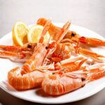 Questa ricetta è accompagnata dai fagioli borlotti, e da un brodo fatto con gli scarti degli scampi.