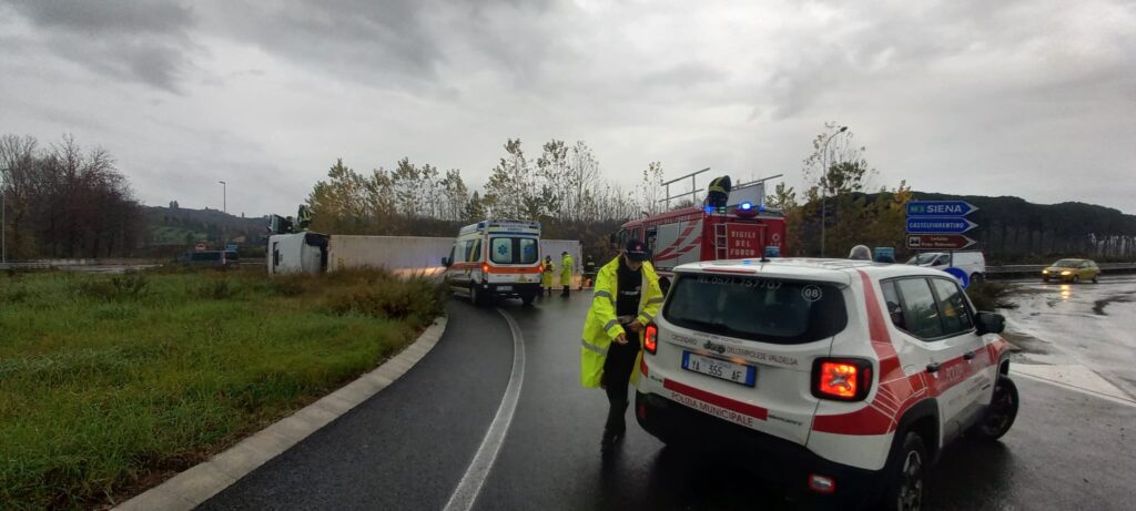 Alla rotatoria di Brusciana della nuova 429 a Empoli un autotreno si è ribaltato su di un fianco questa mattina alle 8.10. Sul posto la Misericordia di Empoli, i vigili del fuoco del Terrafino e la polizia municipale dell'Unione dei Comuni. Il conducente non ha avuto gravi conseguenze. Una ditta incaricata effettuerà il recupero e il ripristino del mezzo pesante.