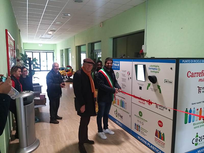 Il Carrefour Express di Calcinaia e il Market di Forcoli scelgono la sostenibilità. Sono stati inaugurati nei giorni scorsi due nuovi ecocompattatori per la raccolta e il riciclo delle bottiglie a uso alimentare in PET (polietilene tereftalato), realizzati in collaborazione con il consorzio Coripet. La prima inaugurazione si è svolta a Forcoli nel punto vendita in via XXX Novembre 10, alla presenza di Marco Gherardini, sindaco di Palaia, e di Vittorio Ventavoli, titolare del Carrefour Valdera Market. La seconda, a Calcinaia, in via Garibaldi 106 alla presenza di tutto lo staff del negozio. Sia a Forcoli che a Calcinaia era presente Loris Ferretti, di Coripet.