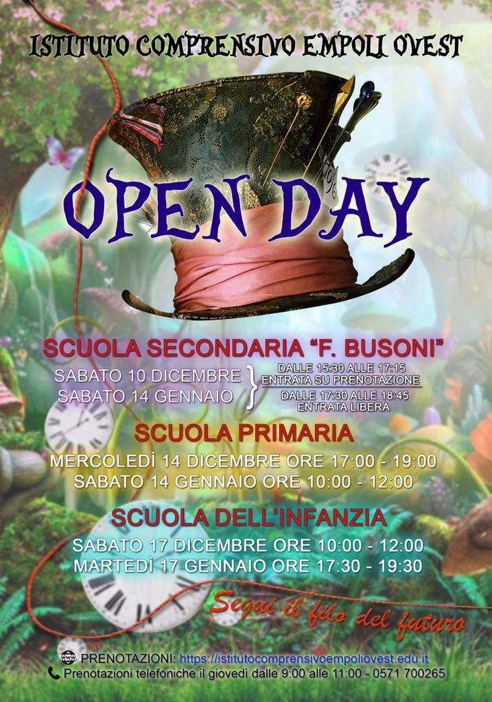 Dopo una lunga pausa di tre anni sabato 10 dicembre la sc. Secondaria di 1° F. Busoni ha aperto la serie degli Open day, che si succederanno nei singoli plessi dell’intero Istituto Empoli Ovest già dal prossimo mercoledì 14 dicembre per le scuole Primarie e venerdì 17 dicembre per quelle dell’Infanzia.