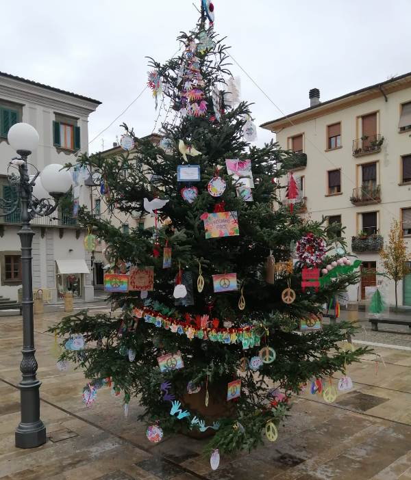 È la pace il tema scelto per l'abete di Natale che anche quest'anno è allestito in piazza Montanelli. Come da tradizione, infatti, l'albero natalizio è decorato con i lavori realizzati dai bambini e dalle bambine delle scuole primarie, dell'infanzia e dei nidi del Comune di Fucecchio, che quest'anno si sono ispirati all'importanza della pace quale motore per un mondo migliore. Partendo dalla lettura della "Filastrocca grande della pace piccola" di Bruno Tognolini e dell'albo illustrato “Chi vuole un abbraccio?” di Przemyslaw Wechterowicz e Emilia Dziubak, ma anche dall'ascolto di della filastrocca musicale "Dopo la pioggia" di Gianni Rodari e Roberto Fasciano, gli studenti hanno affrontato una riflessione sul tema del conflitto, delle relazioni quotidiane e dell'importanza del linguaggio e dei legami interpersonali per costruire relazioni di pace. Sulla base di queste riflessioni, ciascuna classe ha realizzato delle decorazioni con le quali è stato addobbato l'abete di Natale, in una sorta di augurio e di buon auspicio per un futuro non più dettato da venti di guerra bensì dalla pace tra i popoli.