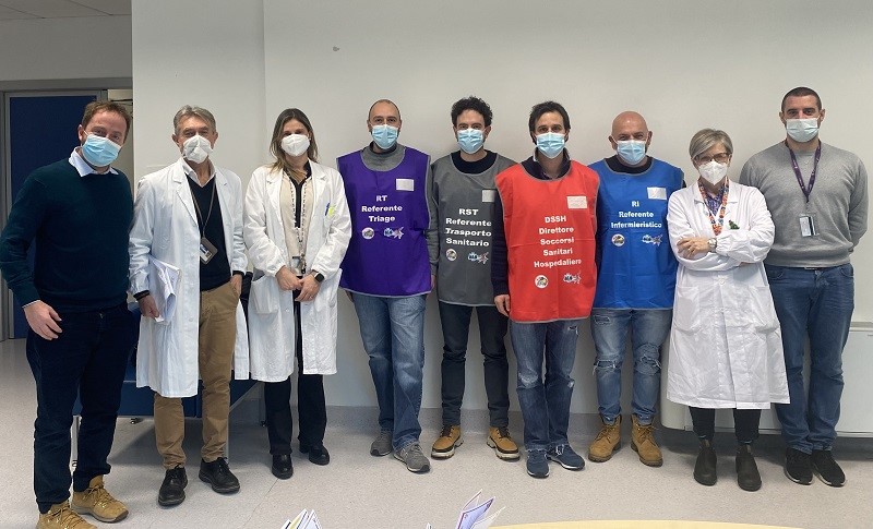 Proseguono le giornate formative aziendali per la gestione di Maxiemergenze organizzata dalla struttura di Coordinamento Maxiemergenze ed eventi a carattere straordinario dell’Asl Toscana Centro.  L’appuntamento di stamani è stato al presidio ospedaliero San Giuseppe di Empoli, in cui è stata realizzata una simulazione di maxiafflusso in pronto soccorso che ha visto coinvolto il personale sanitario del DEU, il personale della direzione sanitaria ed infermieristica dell’Ospedale,  insieme ai formatori aziendali SISMAX.