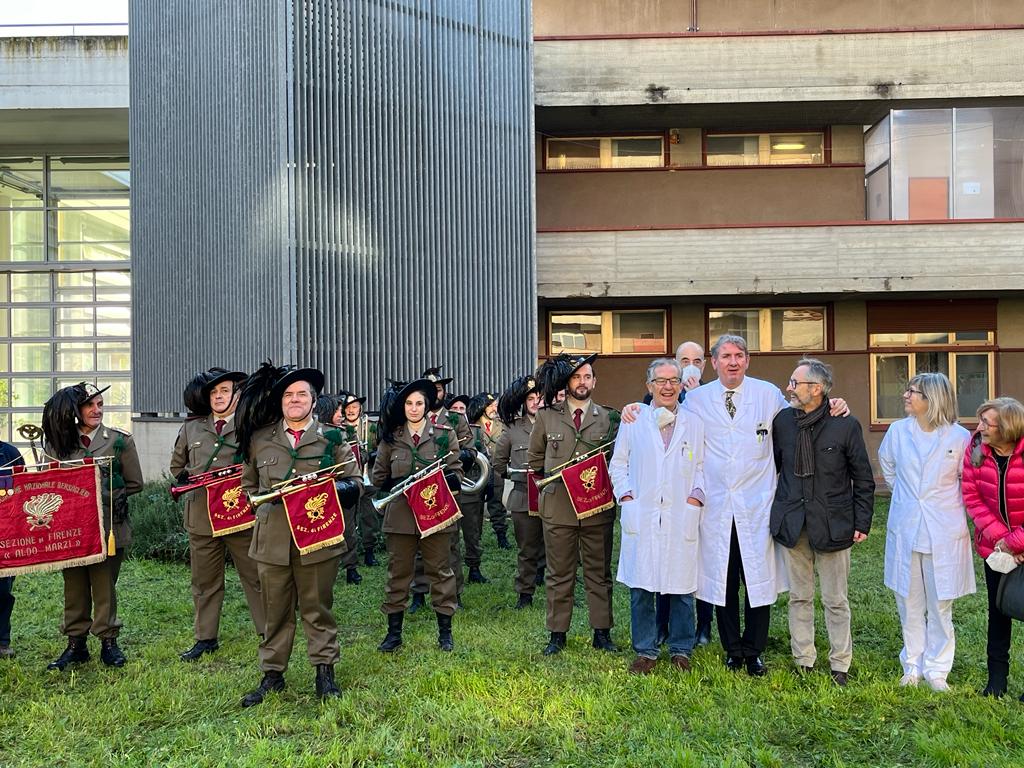 Una strenna natalizia di musicanti, i fanfaroni animati da spirito bersagliesco, a sorpresa questa mattina ha incantato pazienti e visitatori dell’ospedale San Giovanni di Dio. Nel giardino su cui si affacciano su quattro lati le finestre del presidio, la sezione “Aldo Marzi” di Firenze dell’Associazione Nazionale Bersaglieri ha intrattenuto l’ospedale con le sonorità tipiche del corpo dei bersaglieri. All’esibizione hanno assistito il direttore sanitario Simone Naldini, il presidente del Consiglio Comunale, Andrea Ceccarelli, il presidente Scudi San Martino, Roberto Lupi e il direttore del Pronto Soccorso, Gianfranco Giannasi da cui è partita l’idea dell’iniziativa. Alcuni medici e altri operatori sanitari si sono riversati in giardino per seguire da vicino lo spettacolo, chi ha potuto anche fra i pazienti, si è affacciato dalle finestre.