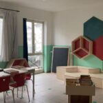 Nella mini biblioteca scolastica è stato installato un mobilio a misura di bambino: un tavolo grande con sedie, dei profili attaccati al muro a forma di esagono, librerie, sedute e pedane in legno. Tutti prodotti sicuri e garantiti, forniti dalla ditta di arredi GAM Gonzagarredi Montessori.