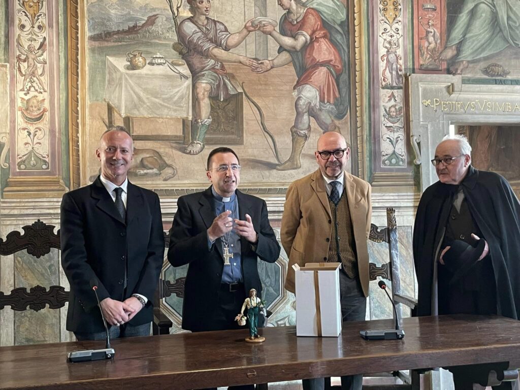 La consegna ha visto per le due associazioni aretine, il primo incontro con il nuovo Vescovo S.E. Andrea Migliavacca che ha dichiarato “Quella di oggi è una prima occasione di incontro ufficiale con Coldiretti e Confartigianato che rappresentano realtà vive e importanti del nostro territorio che mettono insieme la capacità di creare valore e lavoro, senza dimenticare i valori. Vorrei che questo saluto arrivasse anche a tutti coloro che fanno parte delle vostre realtà. Un saluto che diventa anche un augurio natalizio e l’auspicio di una buona produzione. Quella di oggi è una bella iniziativa strettamente legata all’attualità. Riuscite infatti a cogliere l’emergenza o il rilievo del momento, così come avete fatto a suo tempo con quella dell’infermiera, mentre era in corso la fase più acuta della pandemia. Quello del florovivaismo è un settore delicato che potrebbe apparire secondario, ma che ha una forte attenzione al rispetto della terra e della natura, che è una grande ricchezza che ci è stata affidata per essere custodita. I momenti solenni sono sempre accompagnati dai fiori, anche nella liturgia. Non sono solo ornamento, ma segno di vitalità della natura. È molto simpatico che si voglia presentare un’istanza dell’oggi con una statuina del presepio conferendogli un rilievo particolarmente simbolico. Il presepio richiama infatti all’attualità del Natale, al venire del Signore che si incarna nell' oggi. Il pensare una statuina, che è frutto di un lavoro artigianale di qualità, è sentirlo qualcosa di vivo, entrarci come attori, è come portare dentro la vita della Chiesa e di tutti noi la vita di oggi. Questa attenzione aiuta il Natale a essere realtà viva e attuale, un annuncio di novità, pace e salvezza, che tocca tutti noi. È un modo bello per rendere vivo e vero il presepio e il Natale che stiamo per celebrare”.
