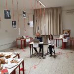Per questo una classe era stata allestita con una scelta bibliografica e filmografica dedicata a quattro nuclei tematici legati agli articoli 2, 10, 27 34 della Costituzione italiana: al centro della stanza, al posto della lavagna, dominava un quadro in bianco e nero, abilmente realizzato a mano libera da una studentessa, che riproduce la celebre foto di Falcone e Borsellino, sorridenti in quell’eterno momento di complice amicizia durante il duro lavoro di Lotta alla mafia per cui hanno dato la vita.