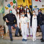 Una coppia di poliziotti ha portato in dono ai ricoverati diversi giocattoli, che sono stati presi in carico dal personale sanitario e collocati nella ludoteca interna, a disposizione di tutti i bambini.