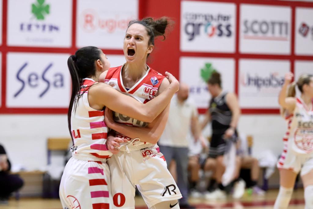 Ancora una volta giù il cappello davanti all’Use Rosa Scotti che travolge la Cestistica Spezzina sotto 19 punti, vola da sola al comando, ipoteca la qualificazione in Coppa Italia ed il primo posto alla fine del girone di andata e, soprattutto, diverte il pubblico accorso nell’imbattuto Pala Sammontana nonostante un orario non felicissimo. Forse nemmeno coach Cioni sperava in un simile epilogo e, con la sua consueta onestà, ammette che il divario è frutto anche di qualche circostanza fortuita ma, al di là della forbice finale, la vittoria non fa una piega. Specie difensivamente la prestazione della squadra è perfetta ed è proprio grazie a questo che l’Use Rosa riesce a superare i momenti difficili che la gara le mette davanti. Per tutto il resto c’è Peresson, glaciale e chirurgica a farsi trovare pronta nei momenti decisivi della partita. Quando c’è da fare non solo il canestro ma anche la cosa giusta, lei risponde sempre presente ed il risultato è sotto gli occhi di tutti.Emozione prima della partita quando il Pala Sammontana ricorda Carlo Faraoni, giornalista ed ex giocatore Use scomparso in modo improvviso pochi giorni fà. La dedica che gli rivolge Alessio Cioni a fine partita è la dedica di tutto il mondo biancorosso per quanto da lui fatto per tantissimi anni vissuti prima in campo e poi sugli spalti. La Spezia parte meglio, entra bene in partita e, dopo la tripla di Patanè, mette un parziale di 0-8 suggellato da Castellani. Qualche libero e Bambini riportano a galla la Scotti che sorpassa sull’-11-12. Dopo il passaggio al 10’ sul 16-16 le triple di Merisio ed una difesa che concede appena 8 punti servono a mandare le squadre al riposo lungo sul 34-24. Alla ripresa del gioco ancora una fase difficile con l’Use Rosa che, nei primi cinque minuti, segna solo due liberi in seguito ad altrettanti tecnici alla panchina ospite. Il primo canestro dal campo è di Patanè e, quando Zolfanelli firma il 38-36, ecco che arriva la risposta di Merisio dall’arco ed il libero di Manetti a ridare un po’ di ossigeno. Ancora Merisio e Ruffini per il 47-38 del 30’ ed il finale è tutto da raccontare. La stoccata decisiva, ovviamente, è sempre di Peresson (57-44), un invito subito raccolto da Ruffini per il più 15: 59-44. Due triple di Zolfanelli ridanno speranza alle liguri ma, ancora Peresson, prima segna un canestro fondamentale e poi sforna un assist al bacio a Cvijanovic. La Scotti piace anche agli dei del basket che consentono ancora a Cvijanovic di trovare un gioco da 4 punti che chiude la gara sul 70-51.Alla sirena esplode la gioia empolese. Non resta che fare gli auguri a Manetti che festeggia come meglio non potrebbe il suo 23° compleanno ed attendere i risultati dagli altri campi per capire se e quanto lontana è la Coppa Italia. Il tutto comodamente sedute sulla poltrona del primo posto che, da stasera, ci perdonerà Eddie Murphy, non è più per due ma per una: l’Use Rosa Scotti.70-51USE ROSA SCOTTIPeresson 12, Cvijanovic 10, Patanè 6, Stoichkova 13, Manetti 6, Ruffini 7, Merisio 11, Antonini, Melita ne, Fiaschi ne, Bambini 5. All. Cioni (ass. Ferradini/Toccafondi)CESTISTICA SPEZZINAColognesi 6, Zolfanelli 12, Castellani 17, Delboni 2, Guzzoni, Nerini 2, Templari 3, Pini 4, N’Guessan 5, Amadei ne. All. Consolini (ass. Sturlese)Arbitri: Venturini di Lucca e Luchi di PratoParziali: 16-16, 34-24 (18-8), 47-38 (13-14), 70-51 (23-13)