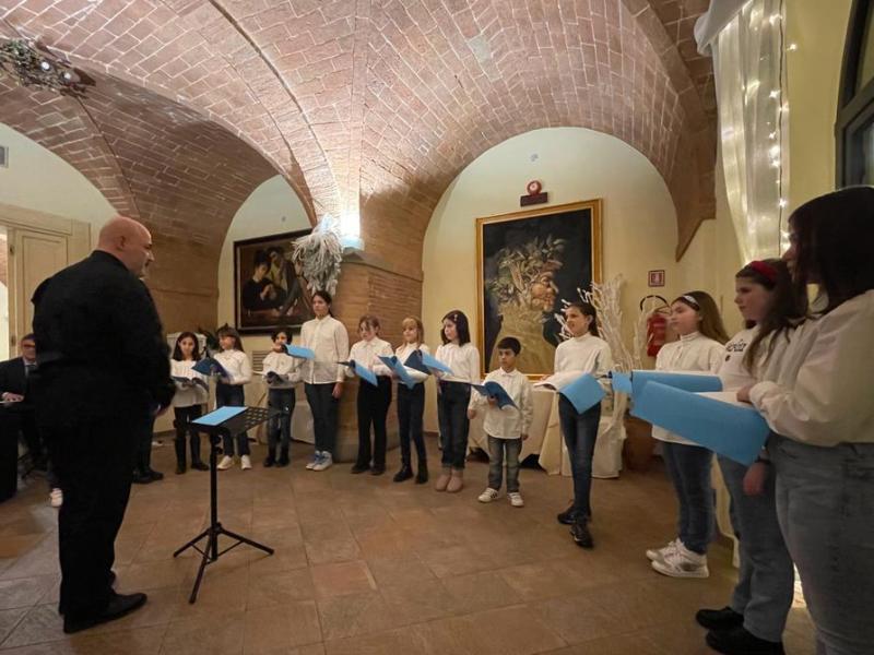 Come avviene in tutte le famiglie, nelle aziende più coinvolgenti e nelle associazioni più partecipate anche il Rotary Club Fucecchio - S.Croce S.A. ha organizzato la propria Cena degli Auguri per soci ed amici. Si è svolta venerdì ultimo scorso presso l’Hotel Villa Sonnino dove gli ambienti storicamente di pregio ed elegantemente addobbati in stile natalizio già predisponevano all’ammirazione ed ai buoni sentimenti. A caratterizzare la piacevolezza della serata è stata però la presenza del coro "inCanto", costituito da un gruppo di bambine e bambini, della scuola primaria Pascoli di Fucecchio, della scuola Fucini di San Pierino e della scuola media Montanelli – Petrarca, accompagnati da alcune loro insegnanti. I piccoli coristi, diretti dal prof. Massimo Annibali e dalla prof.ssa Valentina Fogli, hanno cantato vari motivi natalizi mentre li ha accompagnati al piano il prof. Marco Pro.