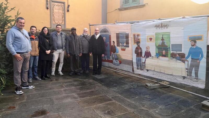 Arte che parla di accoglienza. Per il secondo anno consecutivo l'Associazione Giubilate Internazionale ha raccolto l'invito della Giornata Internazionale del Migrante e dei suoi diritti. Sabato 17 dicembre è stata inaugurata, nella piazzetta della chiesa di Montopoli, l'esposizione di due pannelli alla presenza del presidente dell'Associazione Giubilate, delle istituzioni comunali e delle associazioni. «Abbiamo visto – raccontano l'ideatore dell'iniziativa Federico Calloni e il pittore Eugenio Cino – nella tematica della commemorazione di questa giornata internazionale una grande opportunità per portare nella nostra vita quotidiana un segno, qualcosa di tangibile, vicino ai cittadini e ringraziamo l'associazione Giubilate che ha sostenuto e dato fattivamente la possibilità di esprimere questo nostro sentire, questo desiderio, questa riflessione sul dramma dei migranti, che era dentro di noi».I due grandi pannelli dipinti a mano raccontano due momenti di vita quotidiana: l'ingresso di un migrante e la sua accoglienza in una famiglia.