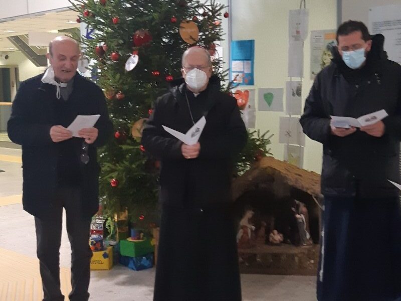 Nell'atrio dell’Ospedale, insieme a Padre Natale e a Don Sebastiano, ha voluto ricordare l'impegno dei sanitari ed esprimere vicinanza e gratitudine a tutto il personale per quanto fanno per la comunità. Il Vescovo si è anche recato in visita dai pazienti dell'Area Medica.