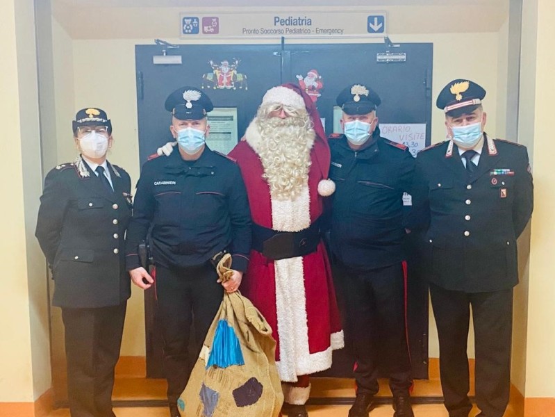 Perpetuando una ventennale tradizione, anche quest’anno Babbo Natale, scortato dai Carabinieri di Arezzo, si è recato al Reparto Pediatria dell’ospedale San Donato. I Carabinieri del Comando Stazione si sono presentati nelle corsie del Reparto di Pediatria, dove, insieme al Direttore dottor Marco Martini, hanno consegnato piccoli pensieri dolci, donando momenti di serenità ed allegria ai purtroppo numerosi piccoli degenti. Quest’anno sono numerosi i bambini ricoverati ma ad allietare la mattinata è stata la sorpresa dell’arrivo del Babbo Natale dei Carabinieri.