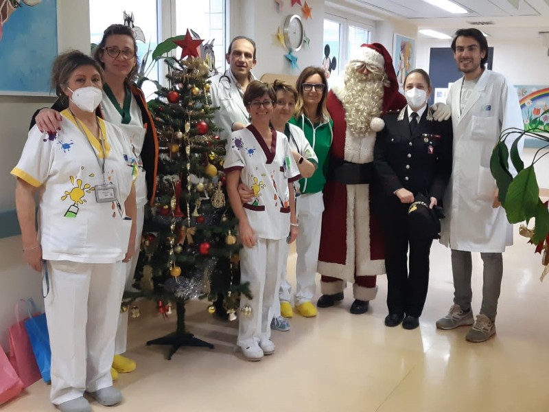 Perpetuando una ventennale tradizione, anche quest’anno Babbo Natale, scortato dai Carabinieri di Arezzo, si è recato al Reparto Pediatria dell’ospedale San Donato. I Carabinieri del Comando Stazione si sono presentati nelle corsie del Reparto di Pediatria, dove, insieme al Direttore dottor Marco Martini, hanno consegnato piccoli pensieri dolci, donando momenti di serenità ed allegria ai purtroppo numerosi piccoli degenti. Quest’anno sono numerosi i bambini ricoverati ma ad allietare la mattinata è stata la sorpresa dell’arrivo del Babbo Natale dei Carabinieri.
