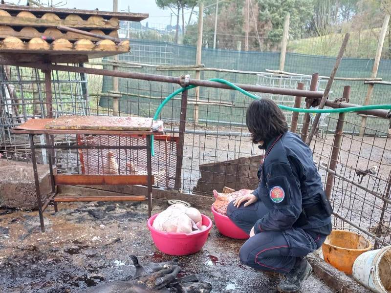 Essendo state causate durante l’uccisione sofferenze non necessarie agli animali è stato contestato anche il reato di uccisione di animale (544 bis del CP). I militari hanno proceduto al sequestro penale probatorio delle carcasse e dei resti della macellazione. Il titolare dell’allevamento ed i due esecutori materiali della macellazione clandestina sono stati segnalati alla Procura della Repubblica.