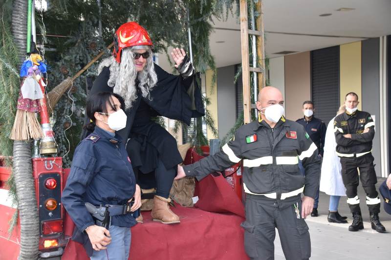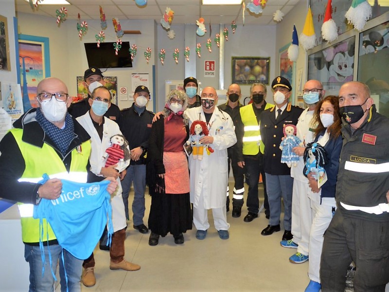 Il personale della Polizia di Stato e dei Vigili del Fuoco, con la presenza di una Befana molto speciale, ha distribuito doni e gadget ai bambini degenti e ai piccoli che si trovavano in reparto in attesa della visita ambulatoriale, alla presenza del personale sanitario e alla direzione dell’ospedale stesso. Doni acquistati grazie alle liberalità fatte dai poliziotti della Questura e del Commissariato di Viareggio e dai Vigili del Fuoco.