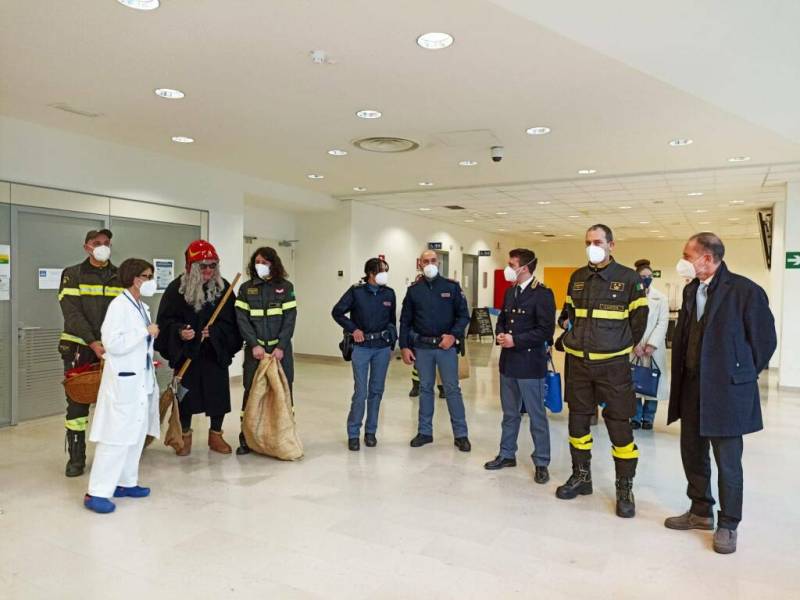 Il personale della Polizia di Stato e dei Vigili del Fuoco, con la presenza di una Befana molto speciale, ha distribuito doni e gadget ai bambini degenti e ai piccoli che si trovavano in reparto in attesa della visita ambulatoriale, alla presenza del personale sanitario e alla direzione dell’ospedale stesso. Doni acquistati grazie alle liberalità fatte dai poliziotti della Questura e del Commissariato di Viareggio e dai Vigili del Fuoco.