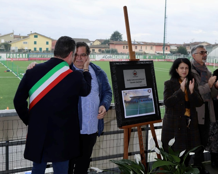 Grande commozione ieri (8 gennaio) a Porcari per l'intitolazione dello stadio comunale a Daniele Giusfredi, il giovane calciatore e studente del liceo Majorana scomparso il 3 agosto 2013 a soli 18 anni per una grave malattia.