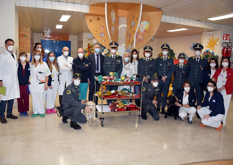 Una bella sorpresa per i piccoli pazienti del Dipartimento della Donna e dei Bambini dell’Azienda ospedaliero-universitaria Senese che hanno ricevuto la visita della Guardia di Finanza di Siena accompagnata anche dalle Unità Cinofile di Livorno e Grosseto. Gli uomini e le donne delle Fiamme Gialle del Comando di Siena, guidati dal comandante provinciale, il colonnello Antonio Marra, hanno portato doni e calze della Befana per i bambini ricoverati, regalando così una mattinata di allegria e spensieratezza a tutti i presenti. Molto apprezzate anche le dimostrazioni delle Unità Cinofile che hanno mostrato le grandi abilità dei cani, grazie alla presenza di due Labrador, impegnati con la GDF nelle operazioni speciali e nei controlli effettuati nei caselli autostradali, porti e aeroporti.