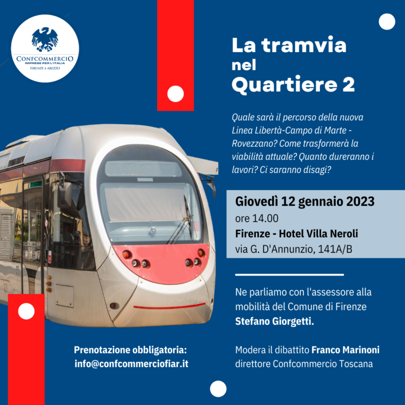 Per rispondere a questi ed altri quesiti, Confcommercio ha invitato l’assessore alla mobilità del Comune di Firenze Stefano Giorgetti, insieme ai suoi tecnici, all’incontro dedicato agli operatori commerciali delle aree interessate che si terrà giovedì 12 gennaio 2023, alle ore 14.00 nell’Hotel Villa Neroli di Firenze, in via G. d’Annunzio 141/AB.