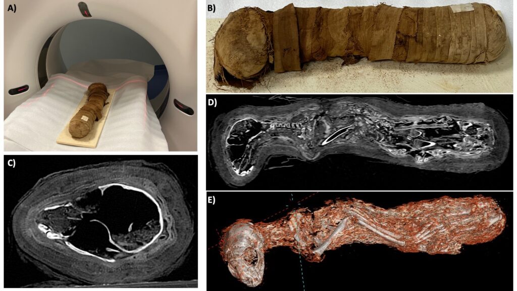 La tecnica di indagine utilizzata, a differenza di quanto si faceva in passato, non è distruttiva, non prevede la rimozione dei bendaggi e fornisce informazioni straordinarie. Mentre i raggi X rivelano solamente immagini bidimensionali, le scansioni TC generano immagini 3D, consentono di esaminare dettagli interessanti e creare modelli da studiare in realtà virtuale, che possono essere stampati in formato tridimensionale.