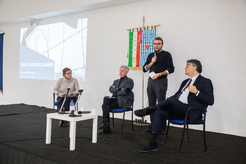 Nella mattinata di oggi, lunedì 16 gennaio 2023, il Palazzo delle Esposizioni di Empoli ha ospitato "Sulle nostre gambe", un incontro dedicato all'impegno di generazioni di familiari per onorare il sacrificio delle vittime della deportazione. Hanno partecipato fra Lele Fiano, figlio di Nedo Fiano, e Ambra Laurenzi del Comitato internazionale di Ravensbruk, figlia di Mirella Stanzione.