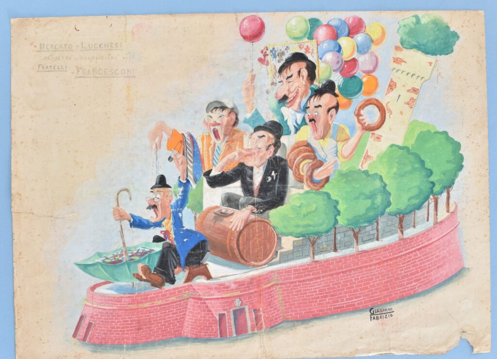 Per promuovere questa storica iniziativa è in fase di realizzazione un manifesto particolare e significativo: il bozzetto di un carro raffigurante Lucca, realizzato e firmato da Fabrizio Giannini su commissione dei Fratelli Francesconi nel lontano 1948. Una bozza di notevole valore storico e culturale, eccezionalmente concessa dalla Fondazione Carnevale all’amministrazione e riutilizzata per la locandina di questa prima edizione dell’evento. Il carro rappresentato nella bozza, mai realizzato, si sarebbe intitolato “Mercato Lucchese”.